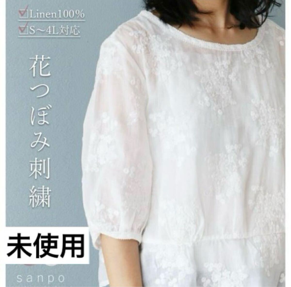 - 未使用◇sanpo◇花つぼみ刺繍トップス◇リネン100%◇ホワイト