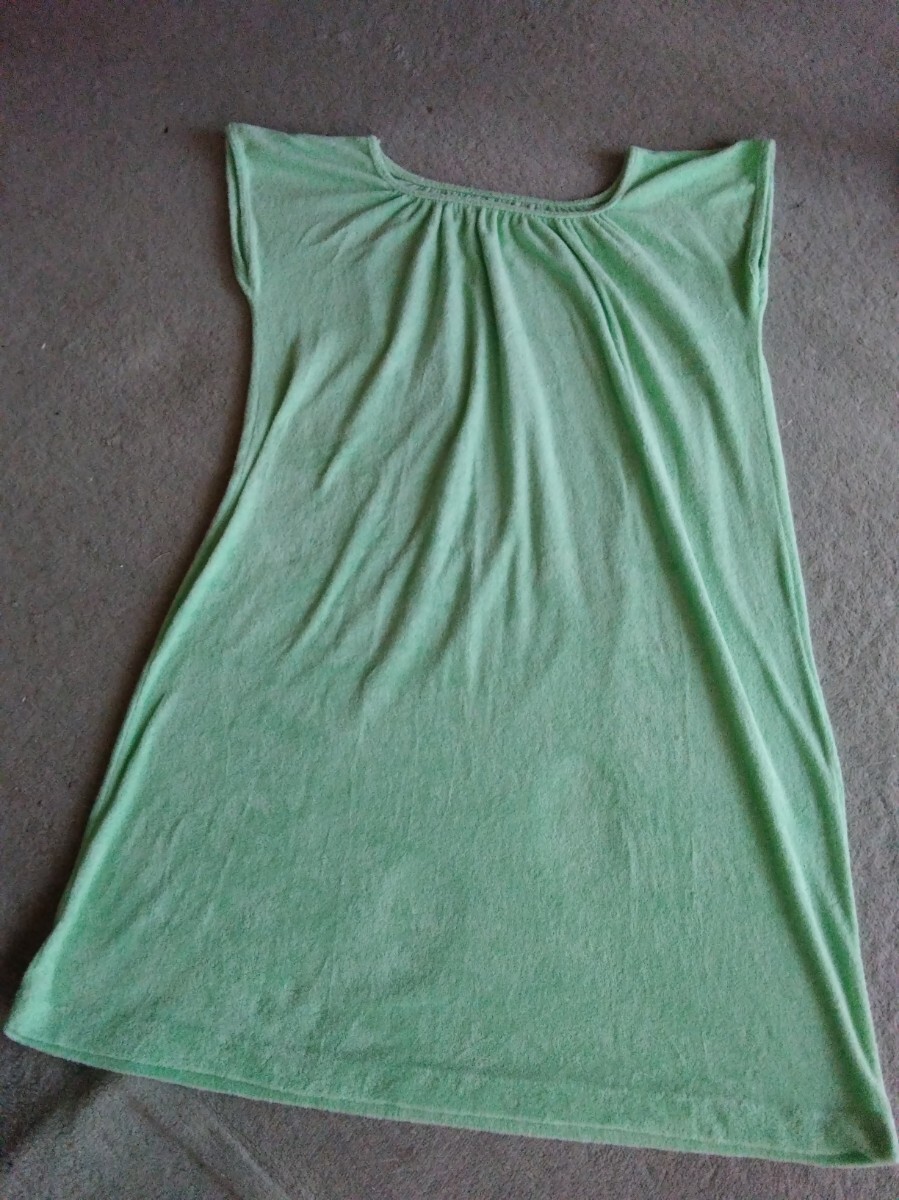 - 「値下げ」美品タオル地【ワンピース】グリーン◆М〜Lサイズ