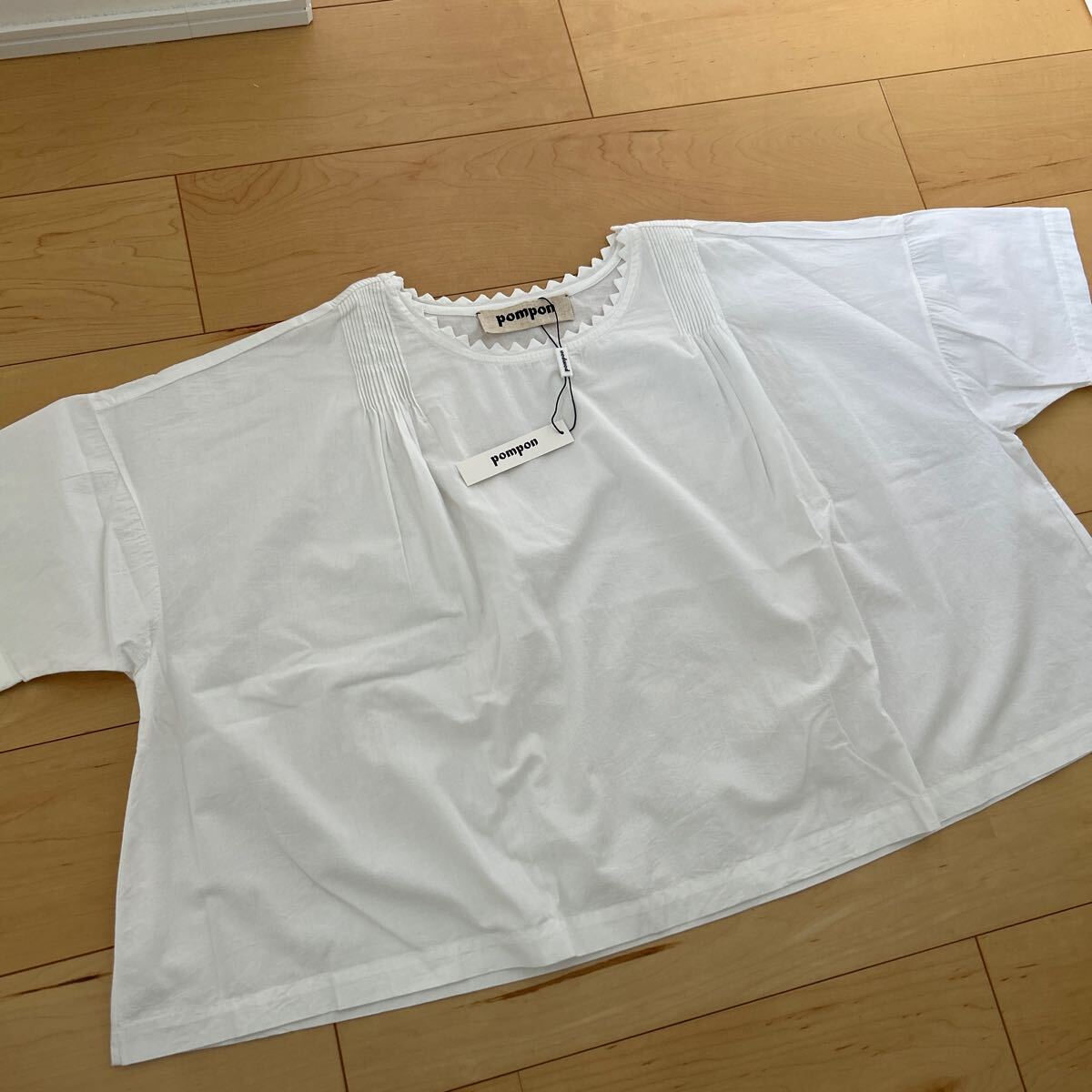 - pomponポンポン 半袖 ホワイト ブラウス カットソー 白 フリーサイズ