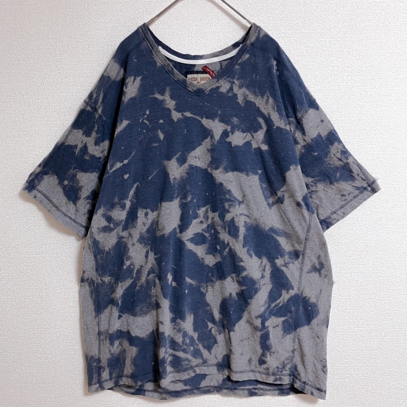 - HUDSON BARROW タイダイ柄 半袖Tシャツ 3X 紺 Vネック グレー