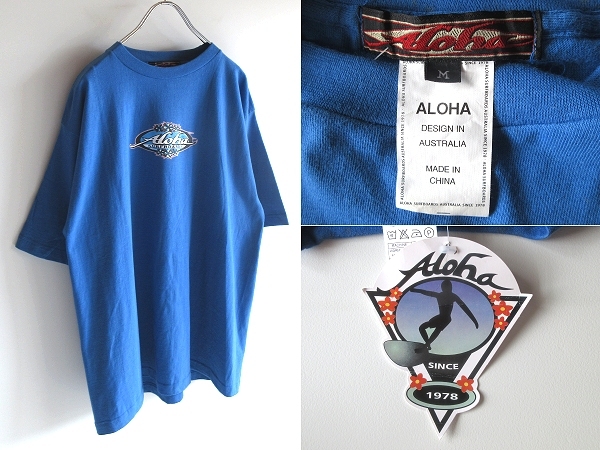 > 希少 デッドストック 00sビンテージ Aloha SURFBOARDS アロハサーフボード ロゴプリント Tシャツ M ブルー 青 ネコポス対応