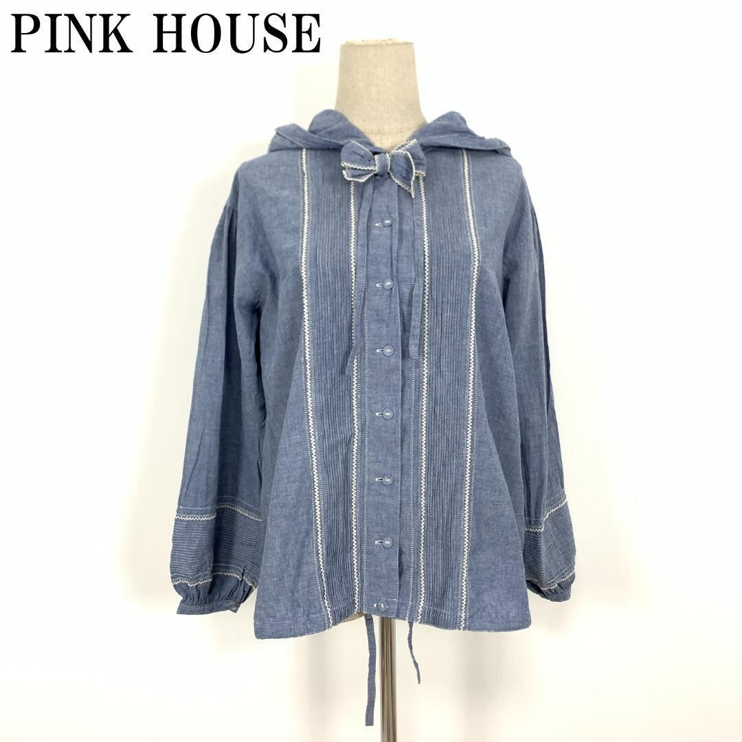 - LA6922 ピンクハウス コットン 長袖フード付きボタンブラウス PINK HOUSE カジュアル ギャザー入り ブルー XL