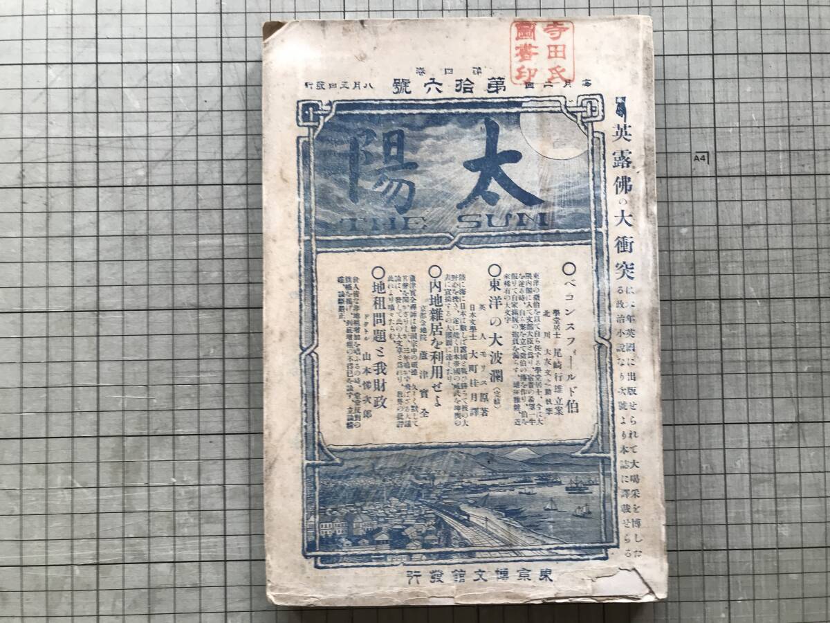 - 『太陽 第四巻第十六号』青山白水・尾崎行雄・下田歌子・徳川篤敬・日光山東照宮・加藤弘之・斎藤緑雨 他 博文館 1898(明治31)年刊 00370