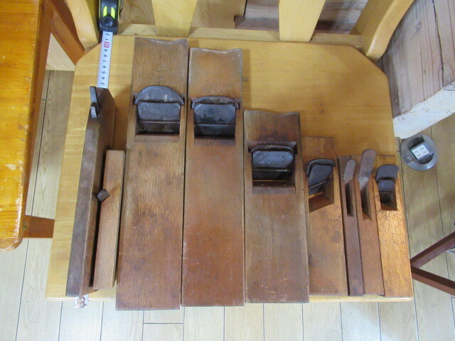 > 74391 おまとめ 大工道具 仕上げ 宮大工 かんな 鉋 カンナ 9点セット 工事 工具 職人 レトロ アンティーク 現場作業 ①