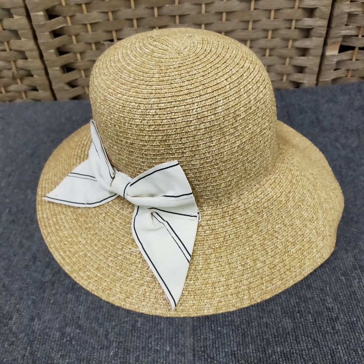 - F01-20250717-008 ナチュラルストローハット 麦わら風リボンハット レディース 夏用帽子 日本製 直径35cm 高さ16cm 頭回り56cm