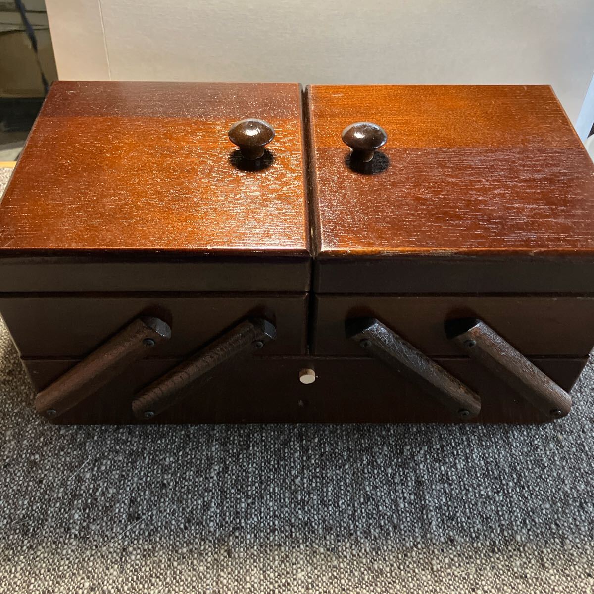 - 未使用 G-Woodアンティーク ソーイングボックス 裁縫箱 3段 木製 お針箱 レトロ 木箱 収納