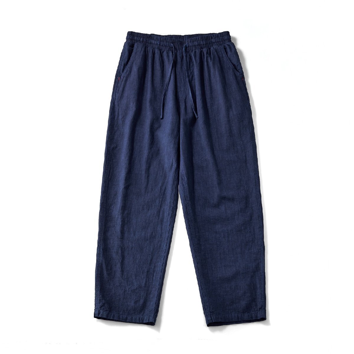 - レトロ 手作り 綿麻 藍染 カジュアルパンツ メンズ ゆったり 大きいサイズ リネンパンツ 天然藍 Indigo インディゴ 薄手 L