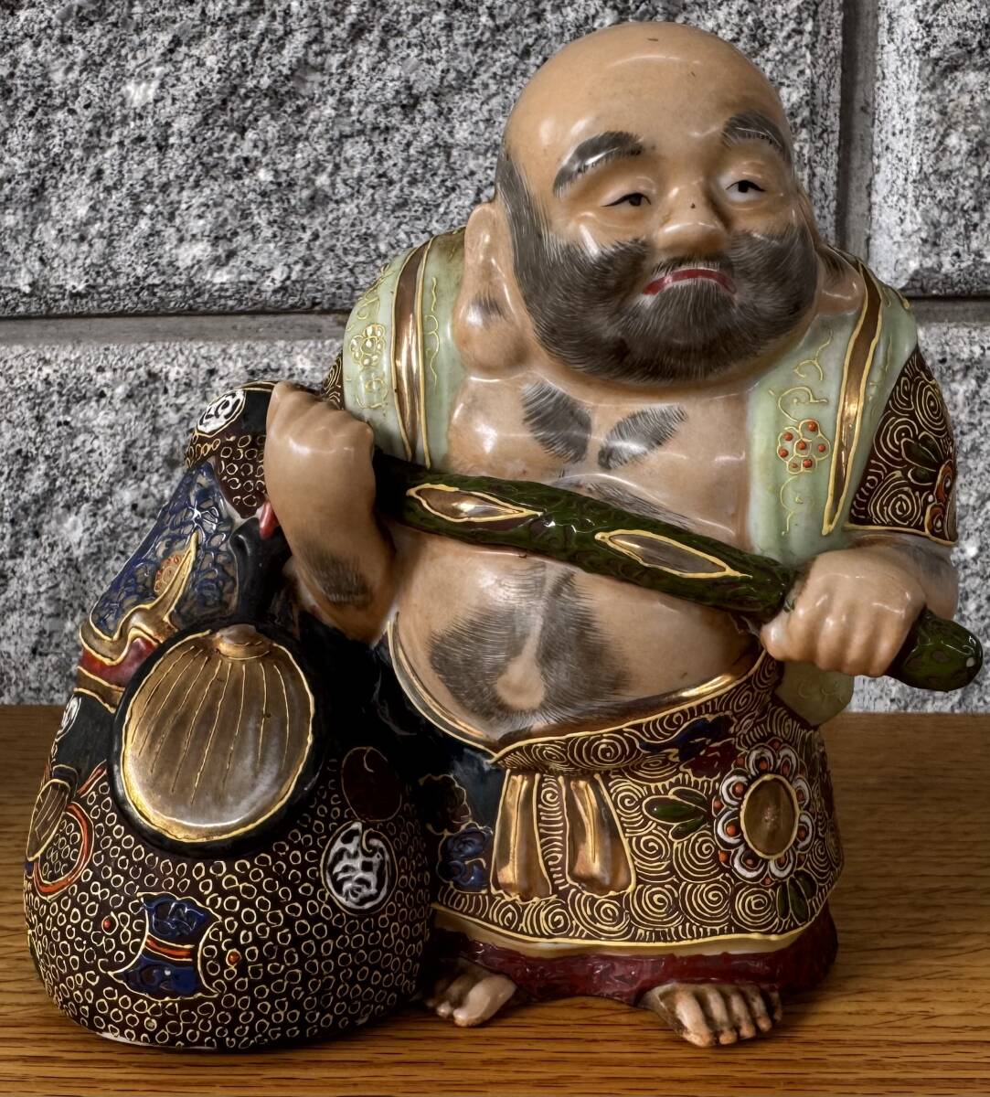 - 九谷焼 布袋様 高さ約16cm 横約17cm 縁起物 陶器製