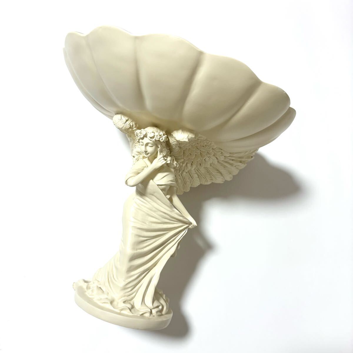 - 新品未使用 女神像 飾り台 花台座 白 オフホワイト 天使 アンティーク彫刻風 オブジェ 置物 エンジェル 海外インテリア ヴィンテージ調
