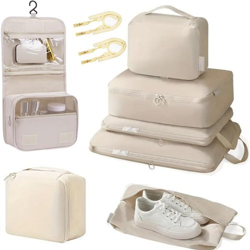 - ☆人気商品 2025年最新 トラベルポーチ 圧縮 9点セット 旅行 け 温泉 出張 海外 修学旅行 靴用 下着収納 ベージュ 75