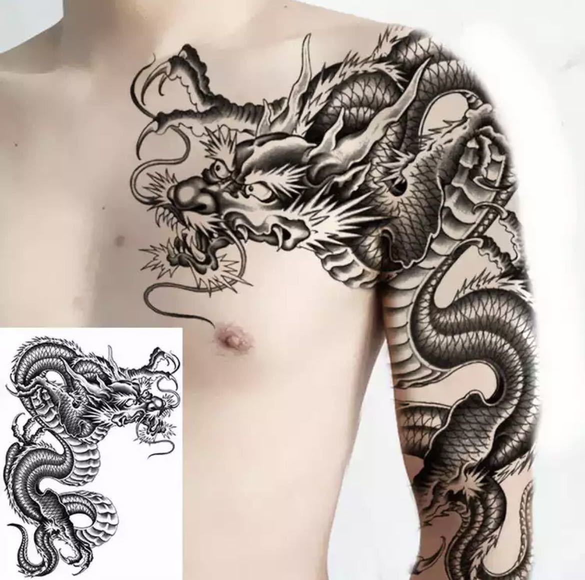 > 約35 × 25cm タトゥーステッカー シール 刺青 入れ墨 タトゥー ボディーアート パーティー ファッション 水墨画風 龍 竜 ドラゴン 辰 2370
