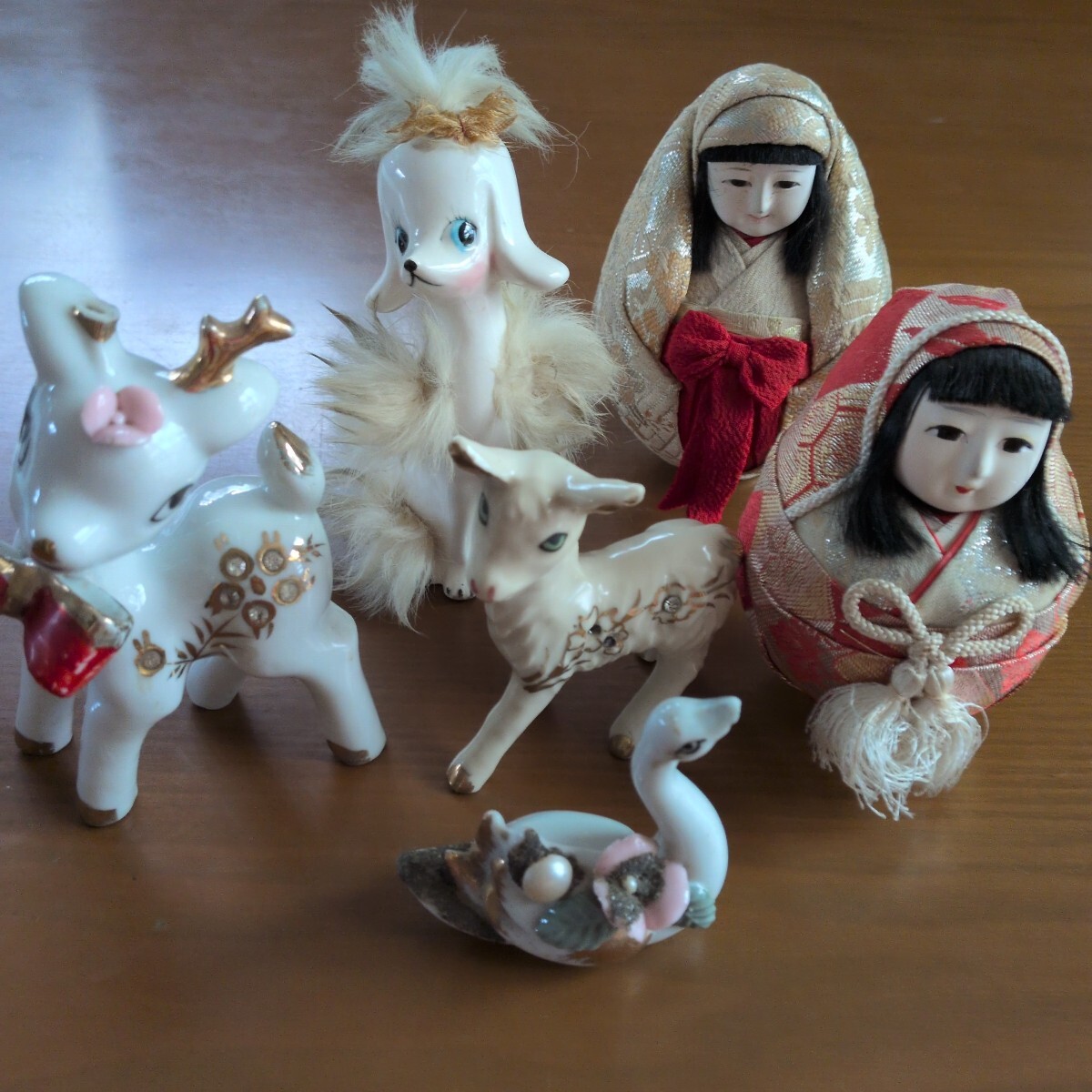 - 昭和レトロ 陶器製バンビ、ワンチャン、湯姫人形、インテリア