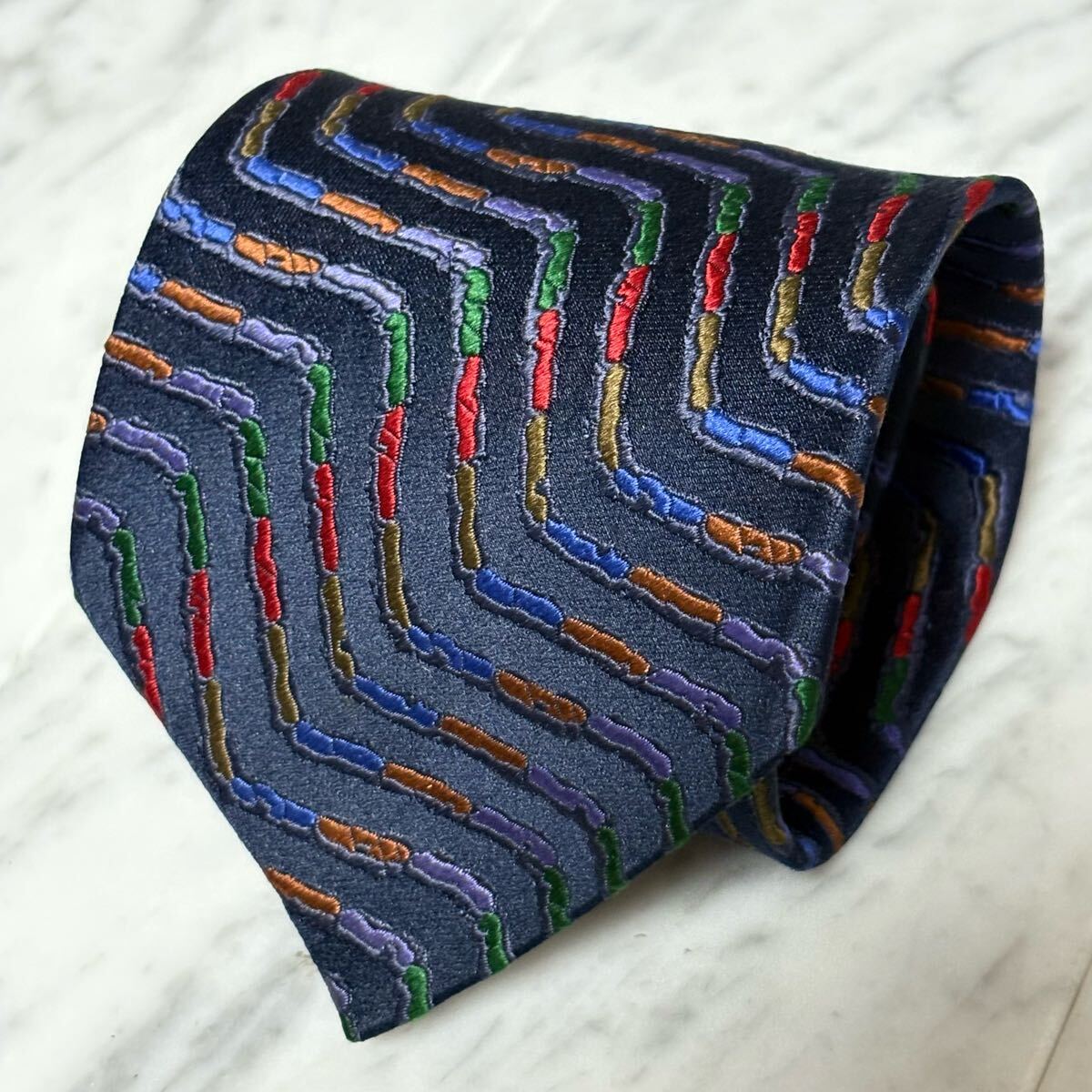 - 【美品】 999円~ ネクタイ ネイビー マルチカラー ストライプ系 (B12)