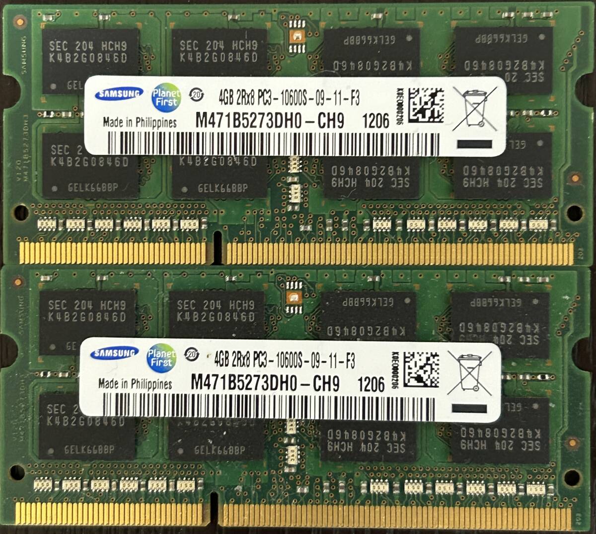 > 即決 動作確認済み SAMSUNG サムスン SO-DIMM 204pin DDR3 PC3-10600S 4GB×2枚 ノートパソコン用 706