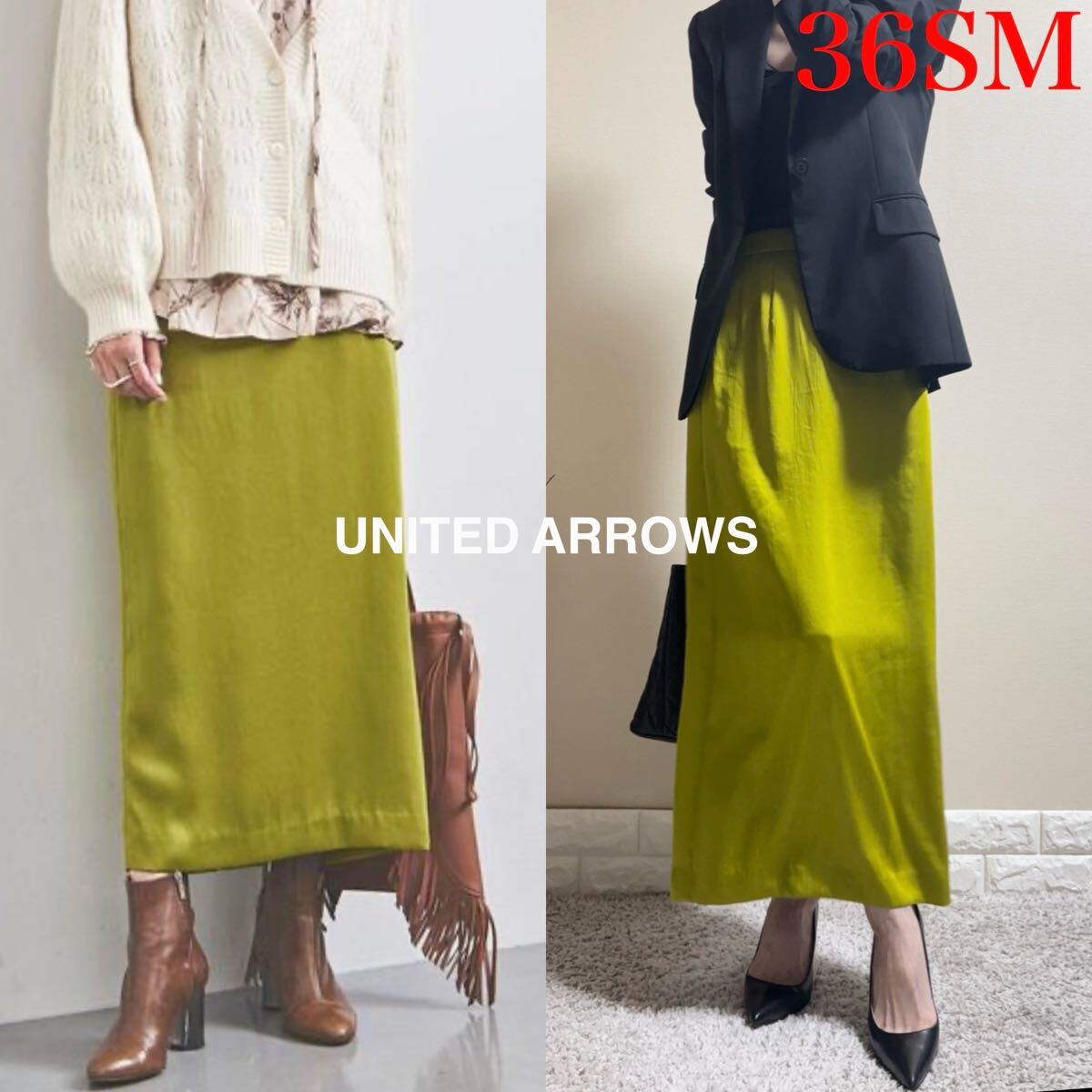 > 1回着用のみ!ユナイテッドアローズ UNITED ARROWS 定価1.6万 洗える ロングスカート SM 36 イタリア ボノット社 イエロー 通年