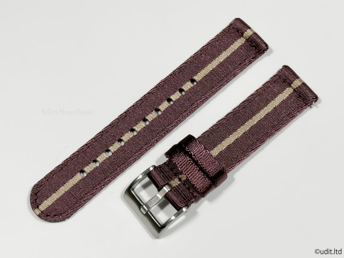 - ラグ幅20mm 高品質 艶あり 分割 NATOストラップ 腕時計ベルト ワインレッド ベージュ シルバー尾錠 ファブリック 二重編み DBI