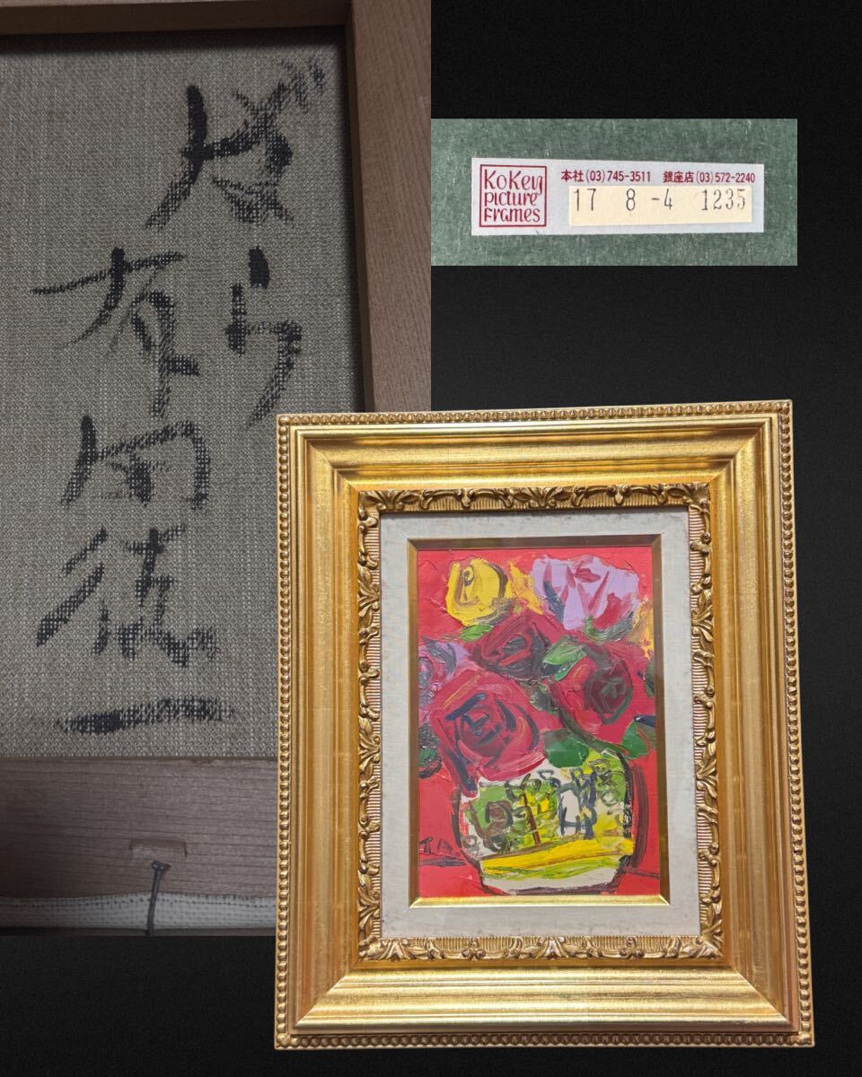 - 油彩 真作 額装 古径額 肉筆 有田 徳一作 「ばら」銀座 裏シール サイズ約 縦395mm×横325mm