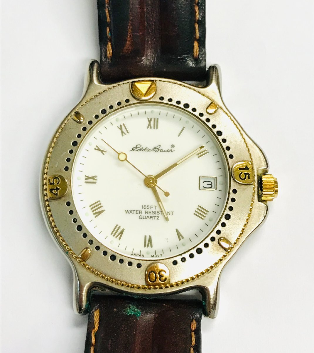 - qow.ZCT16 Eddie Bauer エディーバウアー 白盤×レザーベルト V102 腕時計 クオーツ