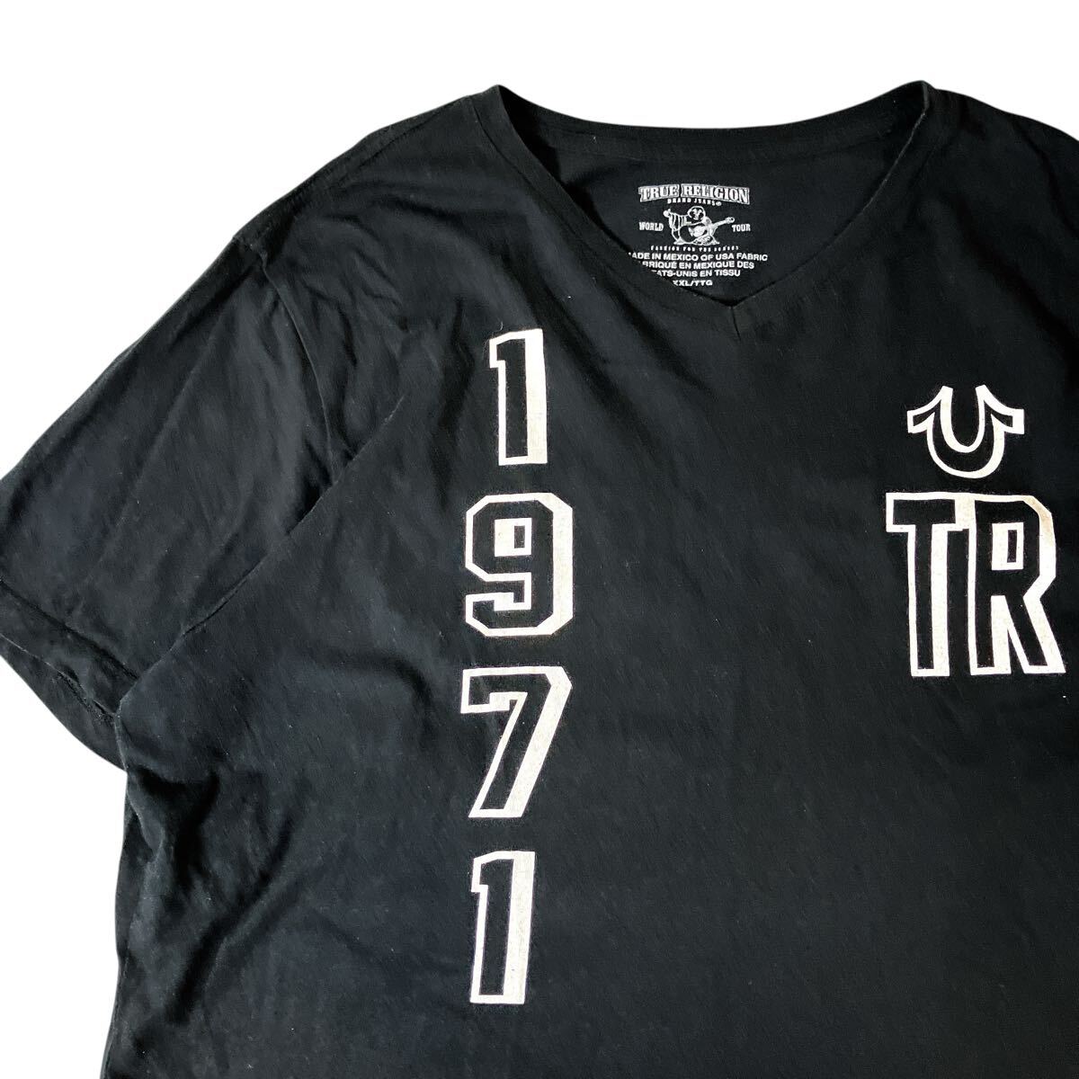 - TRUE RELIGION トゥルーレリジョン Tシャツ はん 半袖 文字ロゴ 古着 半袖Tシャツ 黒ブラック 裾ライン 2XL ビッグサイズ