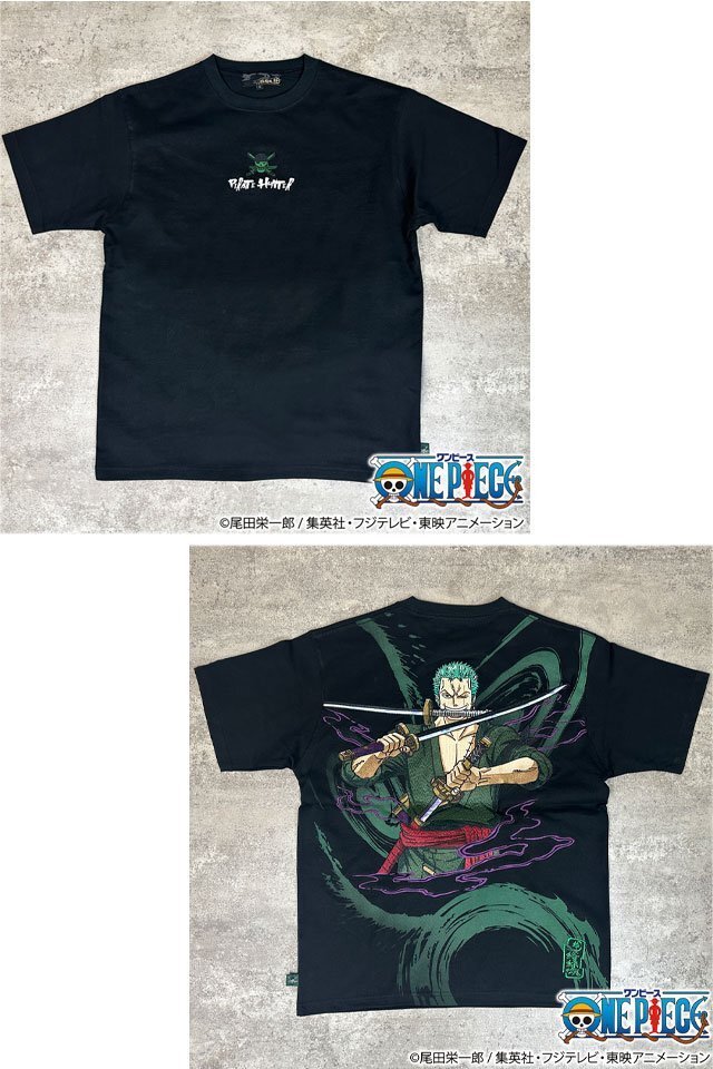 - 絡繰魂×ONE PIECE 【ゾロ】海賊狩りの半袖Tシャツ◆絡繰魂 ブラック XXLサイズ 252095 和柄 和風 刺繍 ワンピース 少年ジャンプ