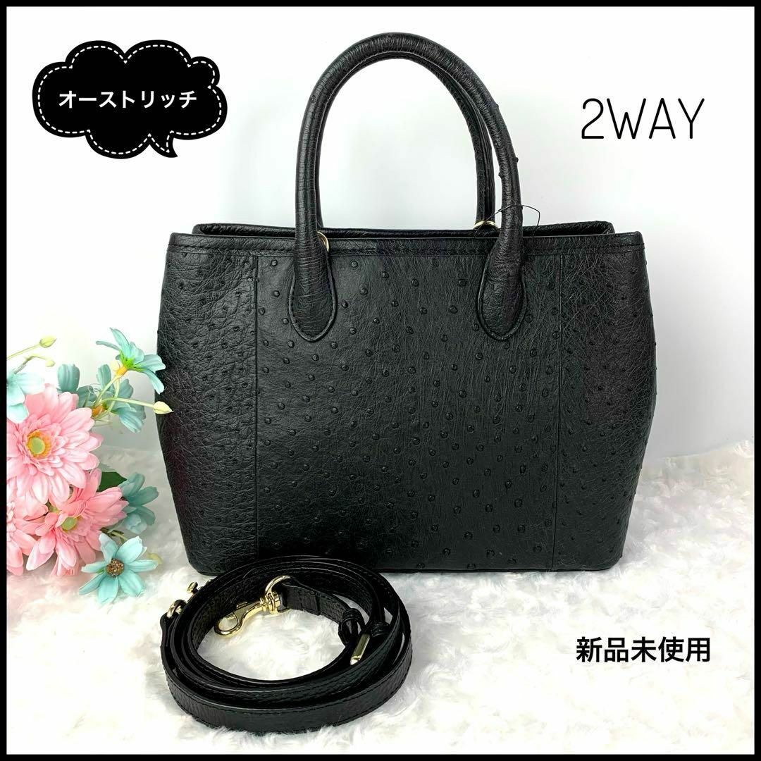 - ロダニア RODANIA オーストリッチ 2WAYバッグ ブラック 新品未使用