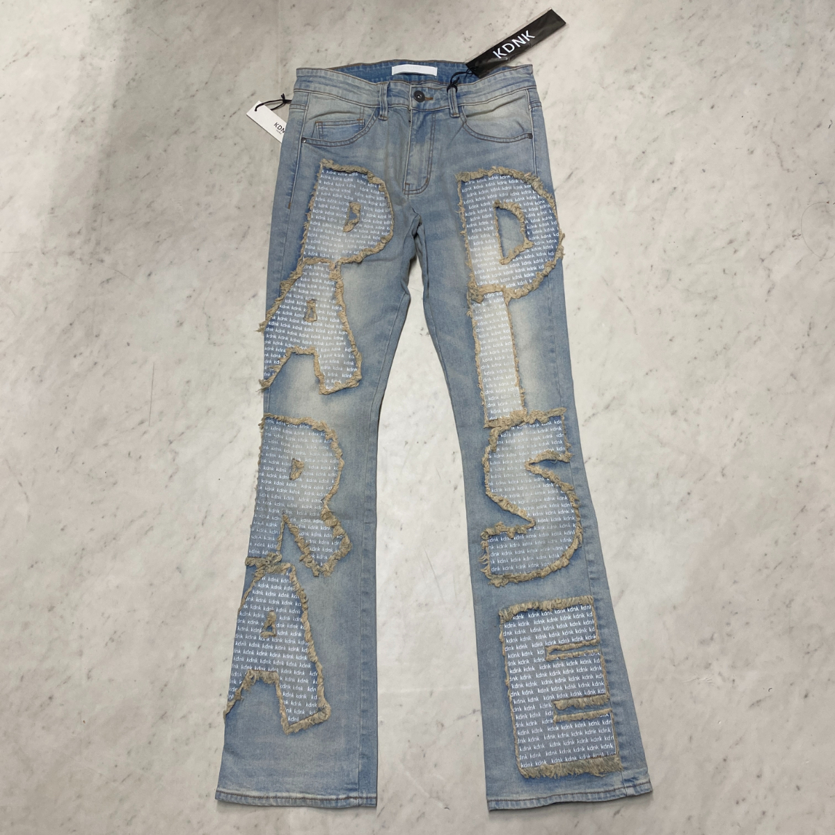 > USA正規品 【W34/L36】 KDNK ディーケーエヌケー Stacked Skinny Flare スタックド スキニーフレア ジーンス モノグラム Paradise (JNS53)