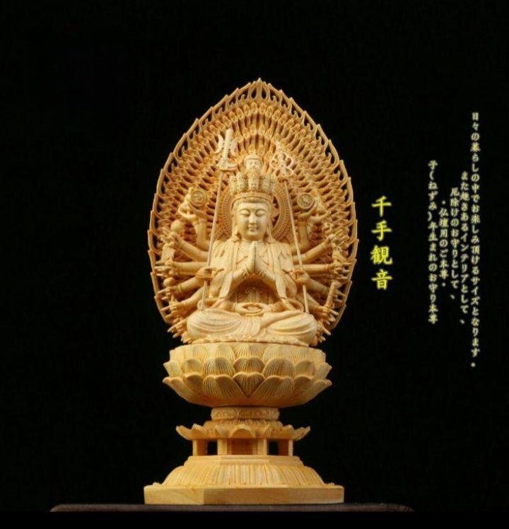 - 千手観音菩薩座像 天然木檜材 精密彫刻 高さ28.5cm【送料無料】【仏具仏像専門店寶勝堂】