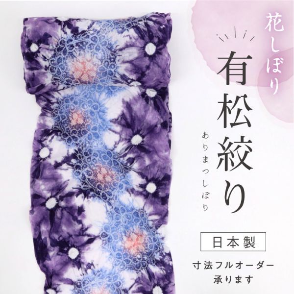 - 【有松しぼり】 浴衣 反物 『花しぼり』 花の丸文 紫多色 夏着物 お仕立て可 反25-85