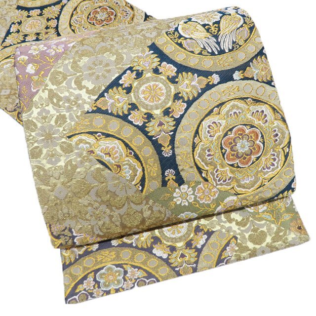 - 袋帯 中古 リサイクル 正絹 フォーマル 仕立て上がり 六通 輪奈織 花鳥模様 花紋 華文 箔糸 多色 金 きもの北條 A1240-10
