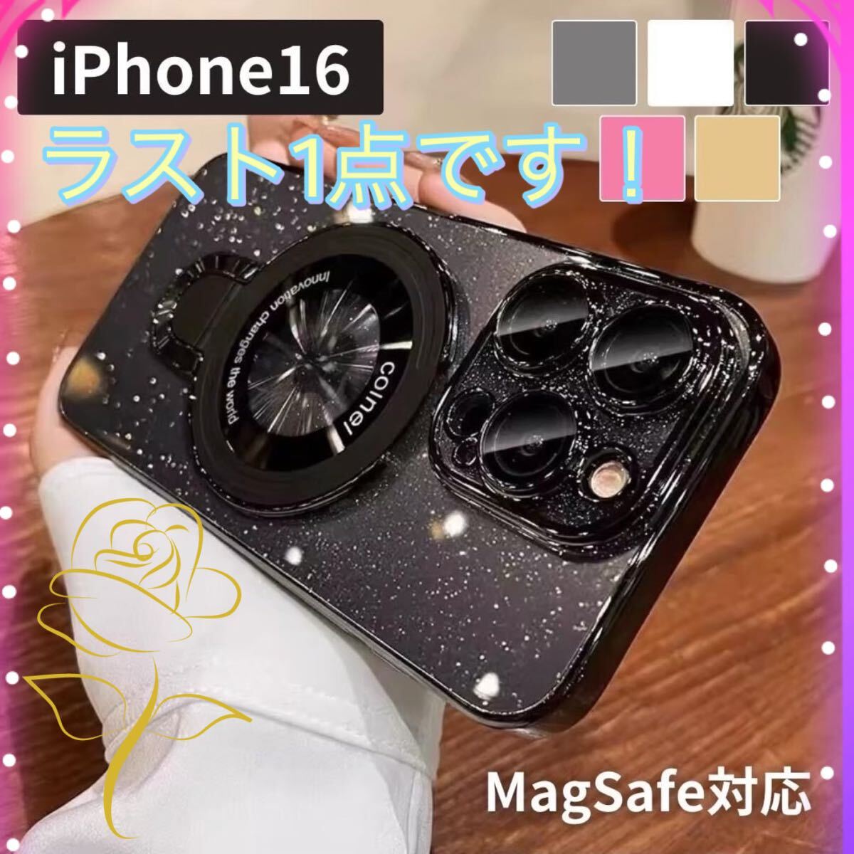 > iPhone 16ケース スマホリング MagSafe対応 レンズ保護 ブラック フォロー+コメントで100円お値引き!