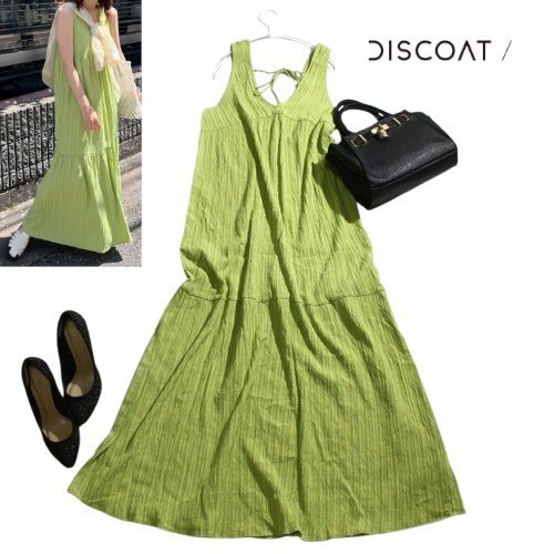 > 美品 ディスコート Discoat 春 夏 着映え リバイバ ジャガード ヨウリュウワンピース マキシワンピース リゾート 黄緑 ワンピース ビーチ