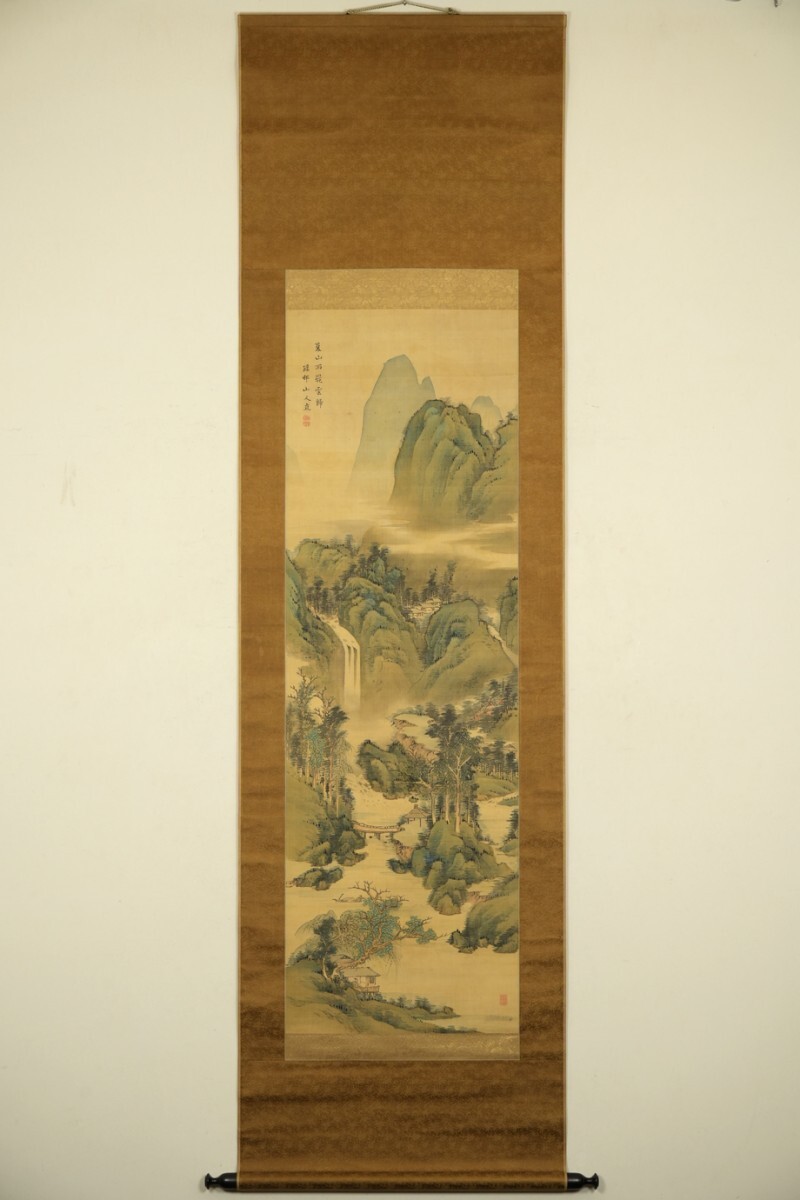 - 【真作】掛軸「岡本緑邨 青緑山水図」幕末 明治 南画家 紀伊画壇 絵画