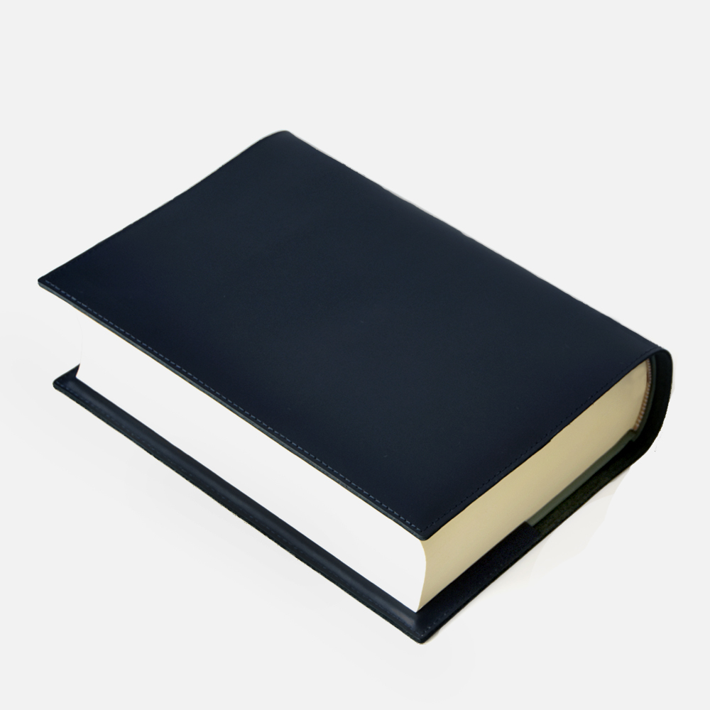 - 送料込み★かばん屋さんの本革レザー聖書用ブックカバー★大型 新共同訳の旧約聖書続編つき対応★ネイビー 紺色