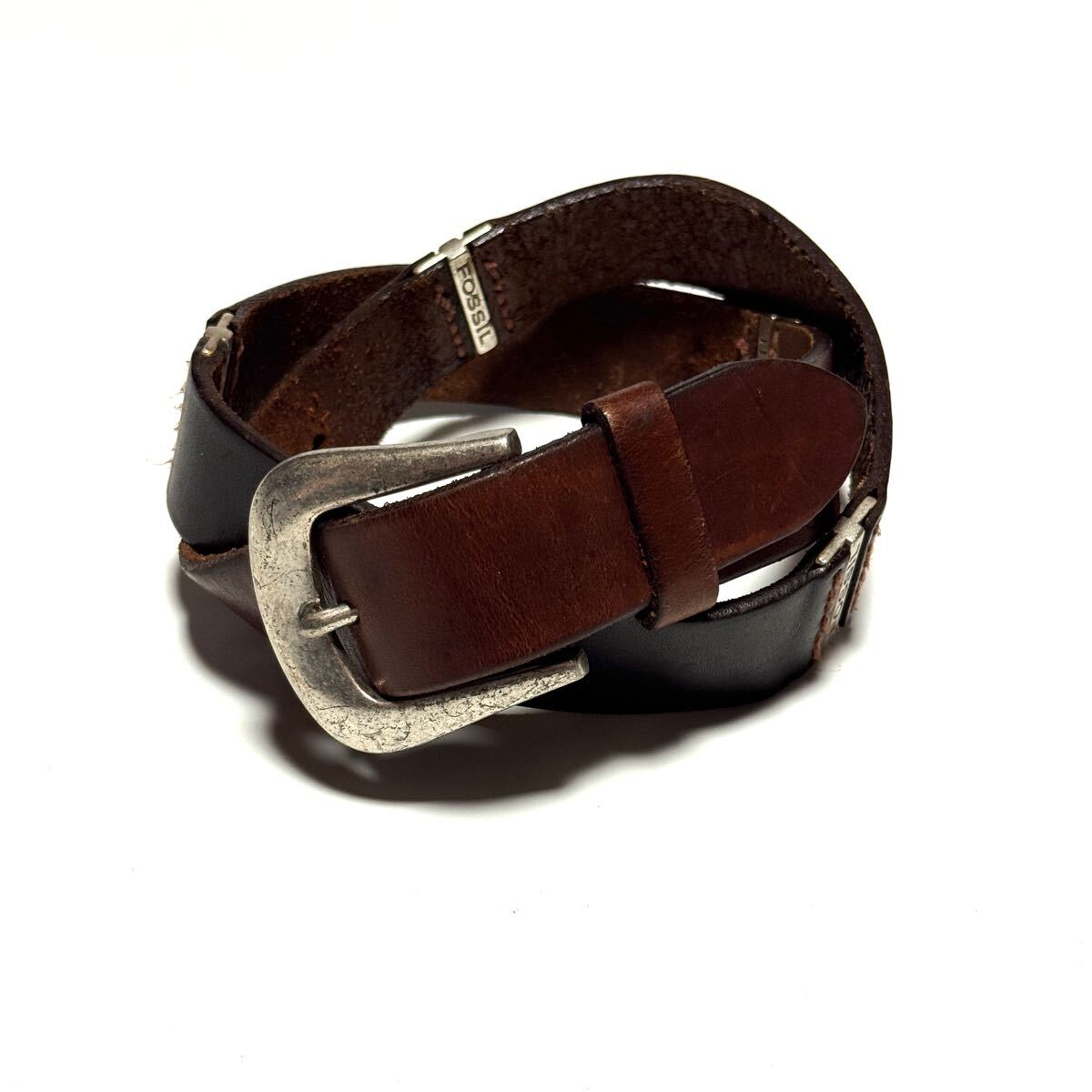 - w67㎝〜w77㎝ レディース FOSSIL 本革ベルト レザーベルト パンクロック 茶 黒 コンビ