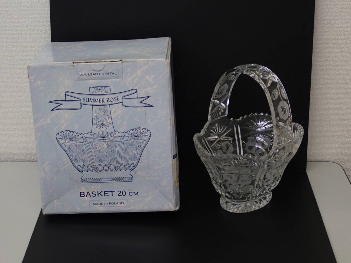 > 210-;(ガラス) ポーランド KAMAY カメイ クリスタル フルーツ バスケット サマーローズ 高さ;約24×19.5×15cm 元紙箱 ★