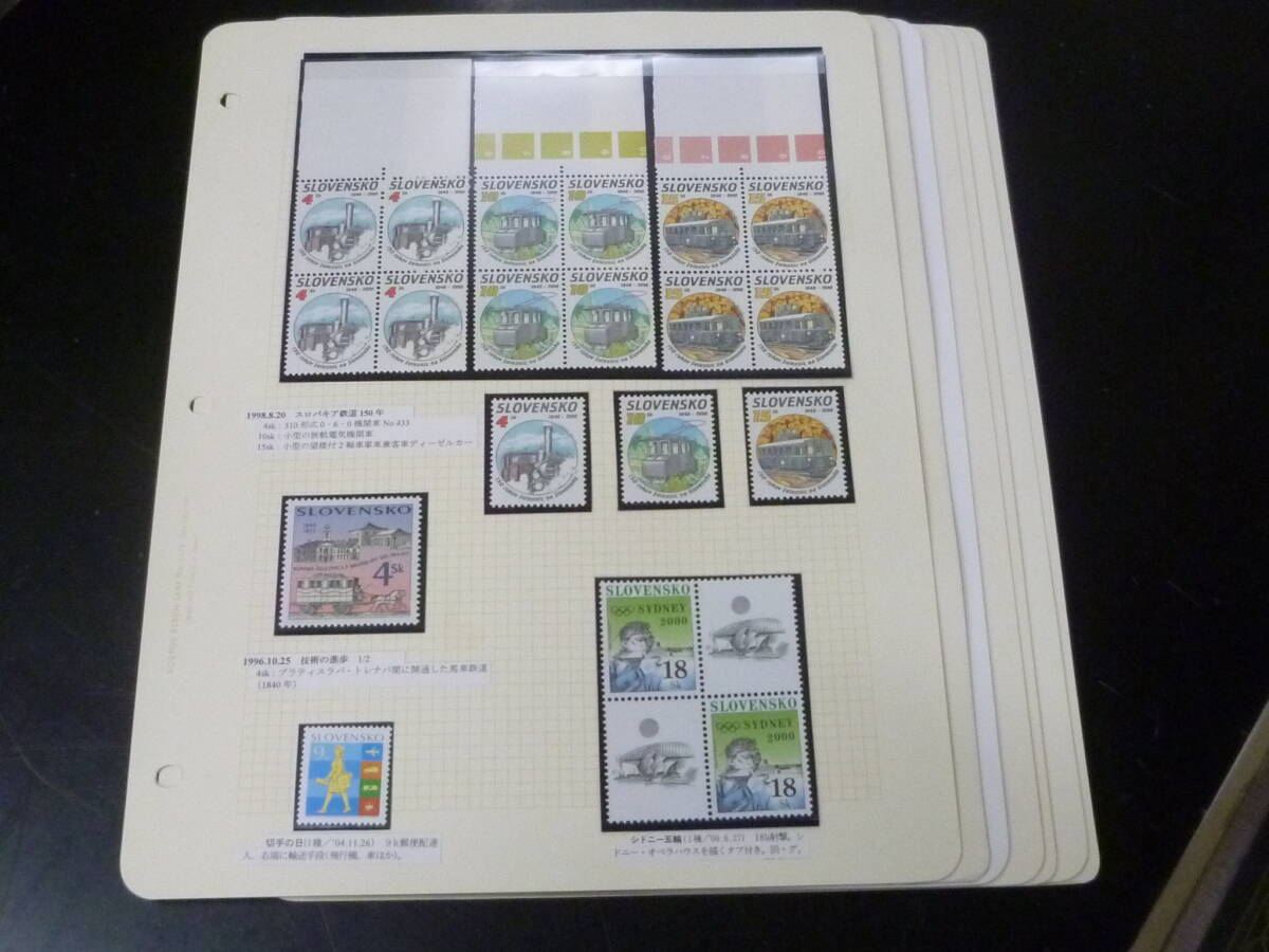 > 鉄道№57-2 スロバキア切手 1996-2015年 各種 鉄道関連 単片・FDC等 計7リーフ(ソマリア1リーフ含) 未使用NH主体・VF ※説明欄必読