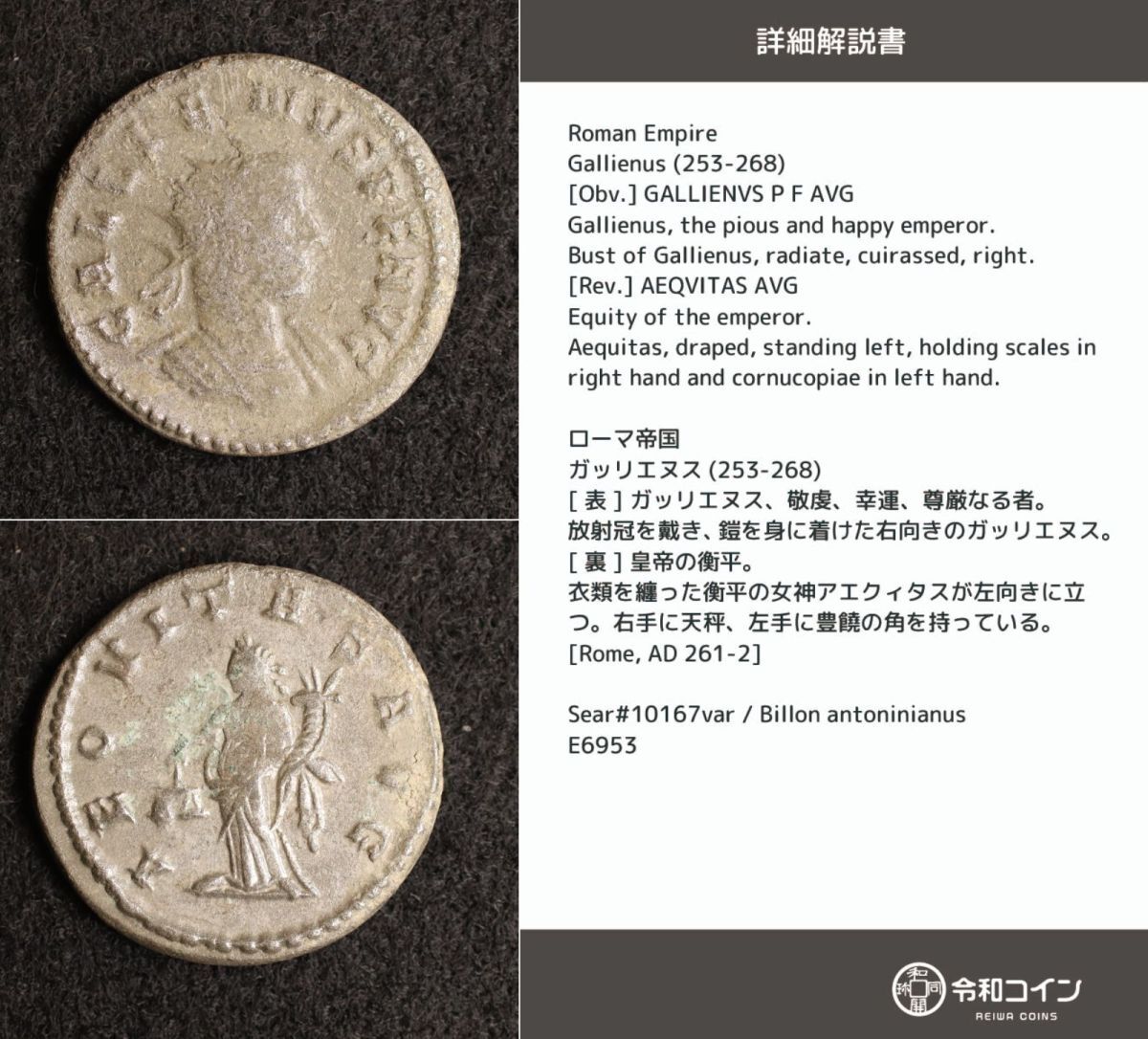 - *[令]ガッリエヌス 古代ローマコイン【詳細説明カード付】アントニニアヌス・ビロン貨 ギリシャ 銀貨[E6953]7n7