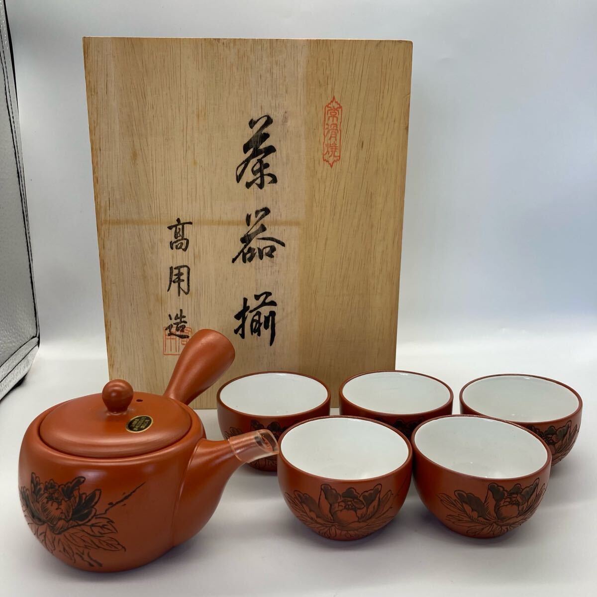 > M0721701B 常滑焼 茶器揃 高用造 急須 湯呑み 茶器 朱泥 在銘 茶器セット 湯呑 湯呑茶碗 煎茶道具 茶道具 当時物 中古品 現状品