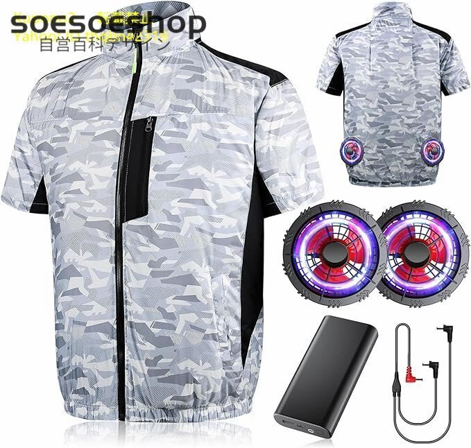 - 空調作業服 ファン付き 半袖【2024年最新&24V高出力&50000mAh大容量バッテリー】ファン付き作業服 冷却服 3D循環送風 3段階風量調節可 通