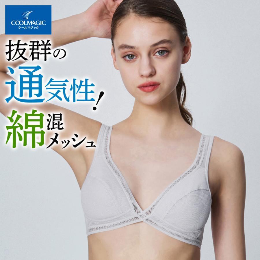 > グンゼ GUNZE クールマジック COOLMAGIC ノンワイヤーブラジャー Lサイズ 吸汗速乾 汗対策 メッシュ 夏用ブラ 綿混 らくちん