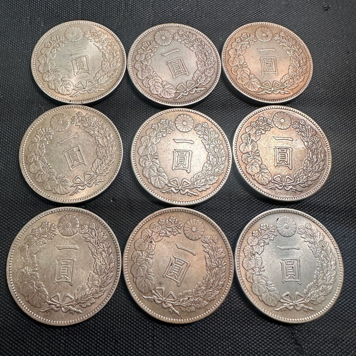 - 一圓 大日本 明治年 9枚セットお得セット新一円銀貨 大型銀貨 古錢 貿易銀 送料無料 当日発送 硬貨 コレクション 収蔵品 竜