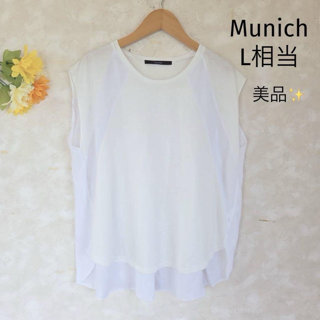 - ミューニック Munich ブラウス L相当 ノースリーブ ホワイト系 美品