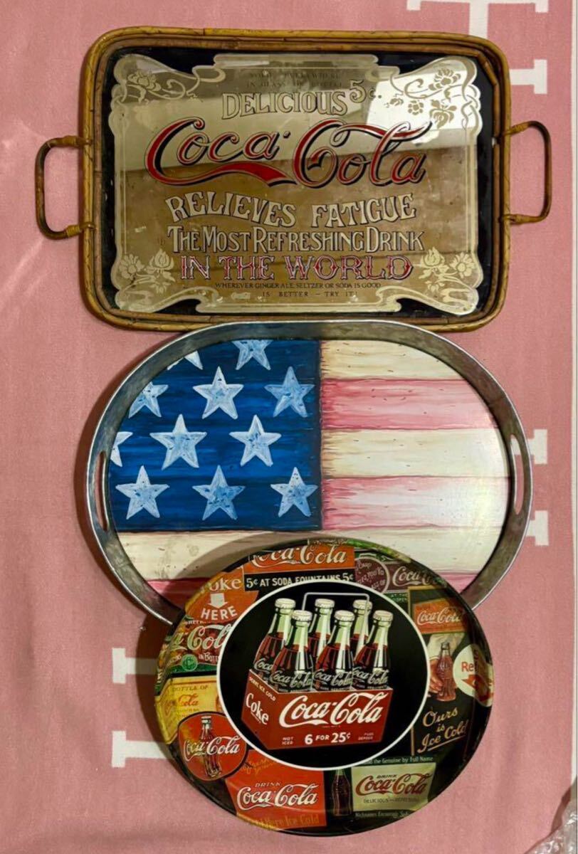 - アメリカ ヴィンテージ コカコーラ・アメリカフラッグ トレー 3点