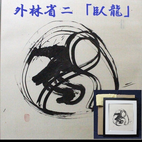 - 【未使用】 外林省ニ 「臥竜」 直筆 書 真作 師 榊莫山 現代墨象家 D923