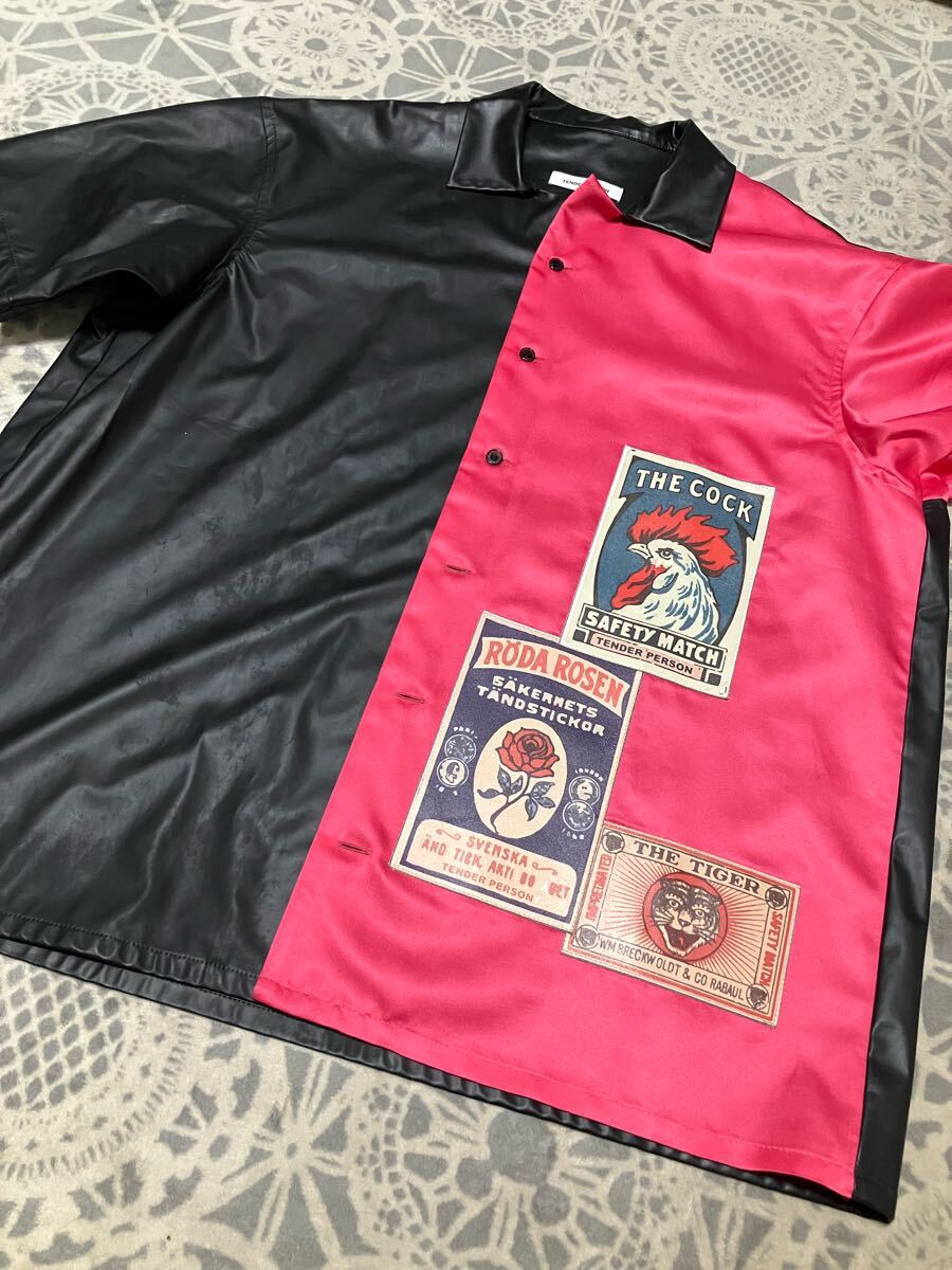 - tender person フェイクレザー サテン切り替え 半袖シャツ