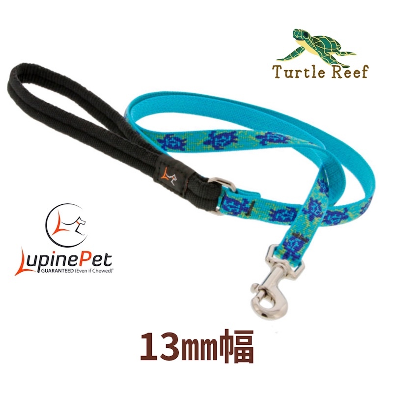 - タートルリーフ柄 13mm幅180cmリード パッド付き LUPINE アメリカ製 軽量 丈夫 小型犬向け ルパイン
