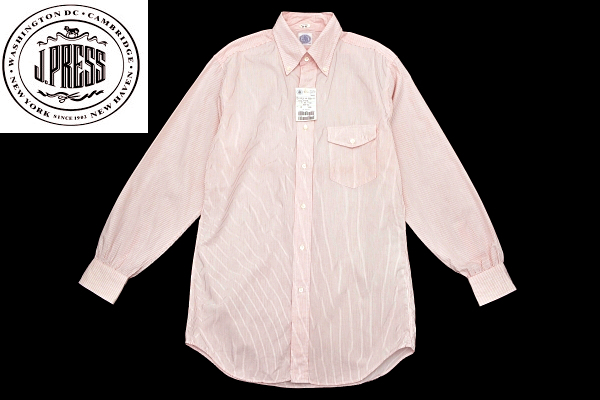 > Y-9018★送料無料★新品 未使用品★J.PRESS J.プレス オンワード樫山★ピンク系 ピンストライプ ボタンダウン 長袖 ドレス シャツ 39-82