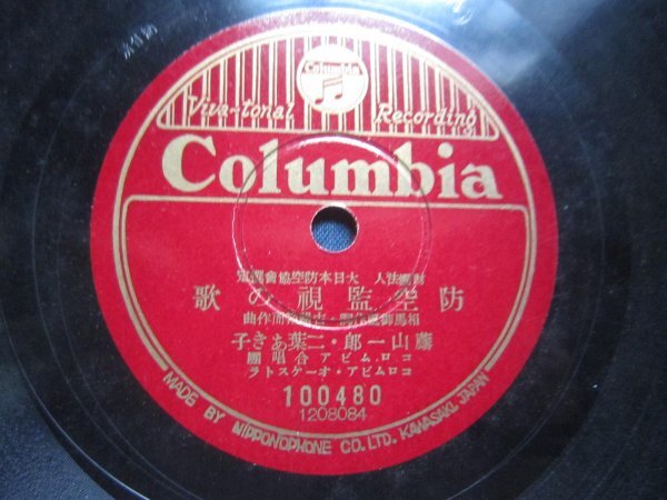 - コロムビア流行歌SP盤650★藤山一郎、二葉あき子/防空監視の歌★コロムビア・吹奏楽団/防空監視の歌★美麗盤。SPレコード