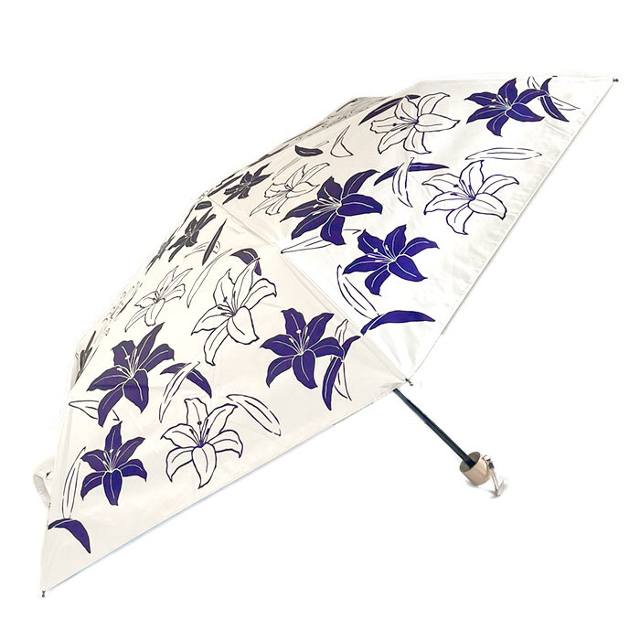 - 百花涼藍 晴雨兼用折りたたみ傘 百合 和風日傘 ユリ柄 晴雨兼用 折り畳み傘 折畳式 コンパクトな傘 UVコート加工 紫外線カット