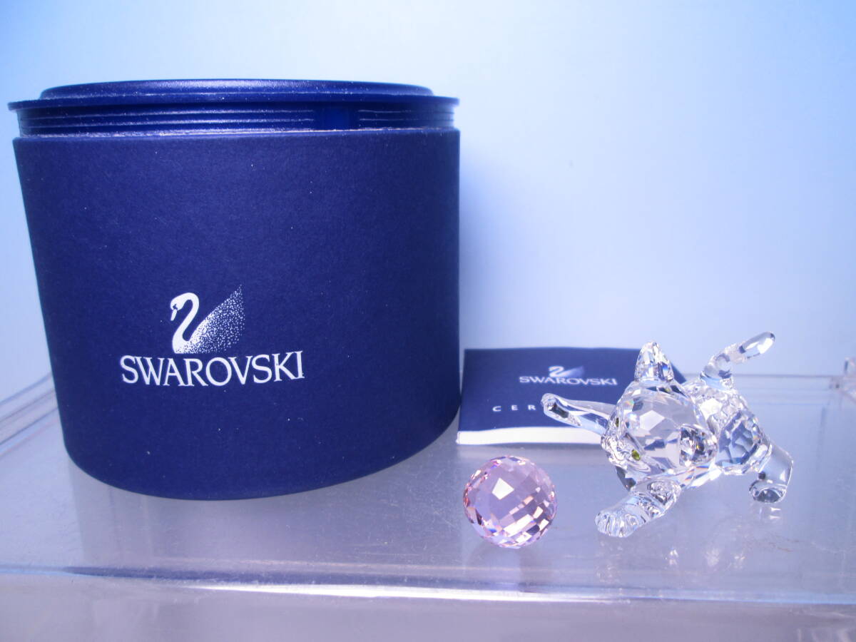 > ☆25 SWAROVSKI スワロフスキー ミニチュアコレクション 子猫&ピンクボール 美品 共ケース付 クリスタルオブジェ